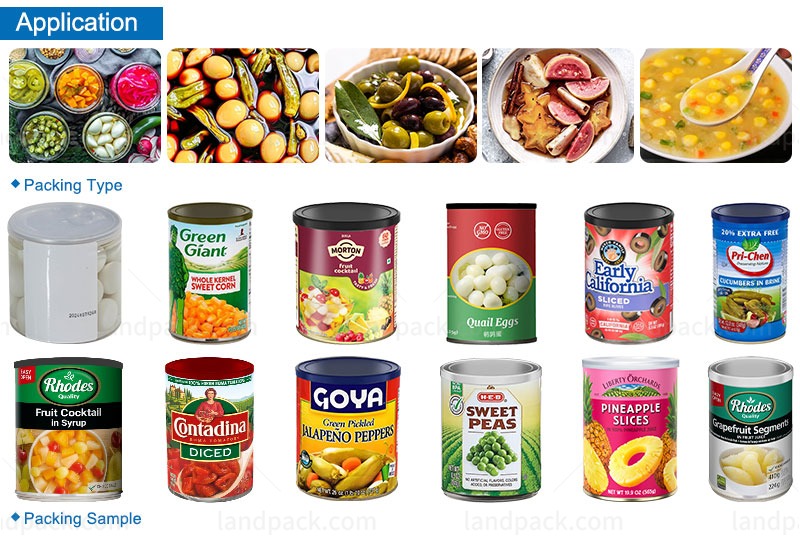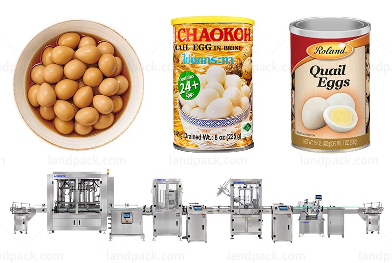 This fully automatic cans filling line is primarily used for filling and packaging quail eggs, but it is also suitable for a variety of other food products such as pickled vegetables, pineapple slices, chopped olives, sweet peas, and other pickled products.