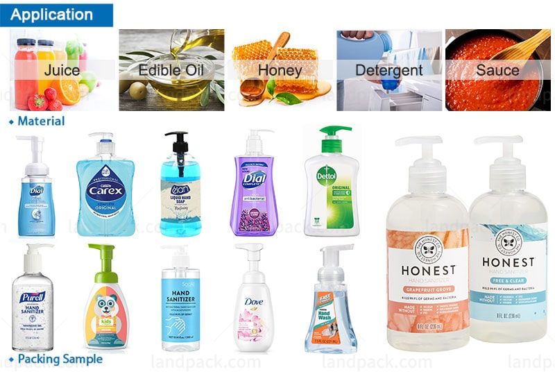 Full automatic liquid bottle filling and capping line, It is suitable for filling liquids and pastes of any fluidity in medicine, food, cosmetics and other industries. Such as alcohol disinfectant, hand sanitizer, disinfectant, alcohol spray, syrup, oral liquid, sauce, shampoo, fruit juice, honey, etc.
