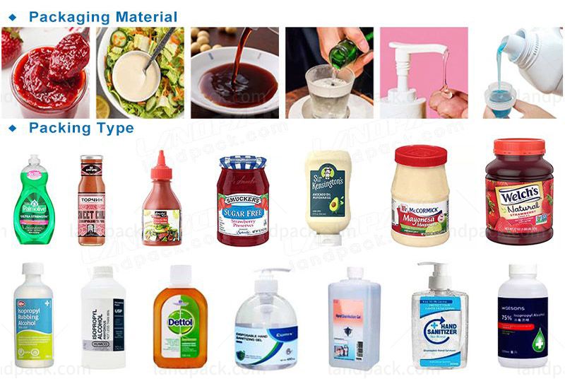 Application:Suitable for automatic filling, capping and labeling of various round, flat, square and other special-shaped bottles, cans, boxes and cans.Applying to food, medicine, pesticide, chemical and other industries. such as hand sanitizer, distilled spirits, lubricate oil, edible oil, liquid detergent.