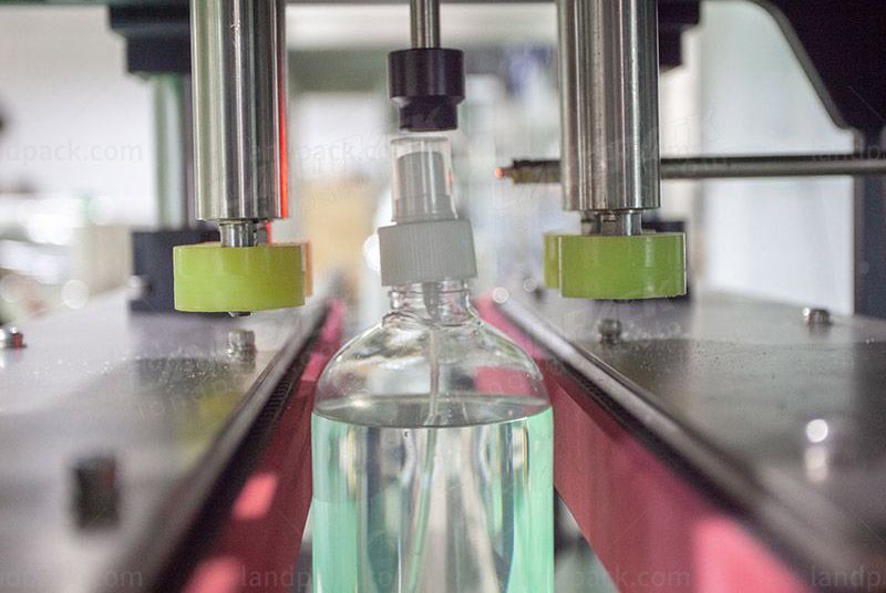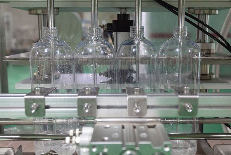 4.Each filling-head is equipped with a bottle-mouth-clamping device, ensuring the injecting material correct aiming at.