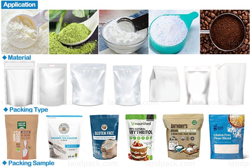Automatic coffee powder horizontal premade pouch doypack packing machine(LDGP-260D), it is widely used in powder filling and seaming line featured with high speed, good accuracy and stable performance. Suitable for coffee powder, talcum, milk powder, spice powder, detergent powder, flour and protein powder, etc.
