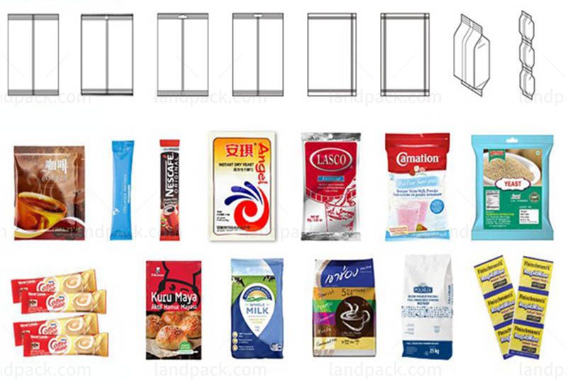 Automatic powder form fill seal machine, Suitable for packing the fine powder material. Such as coffee powder, spice powder, milk powder, flour, fruits powder, seasoning, chemical medical powder, etc. It integrates metering, bagging, packing, sealing, date printing.