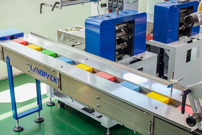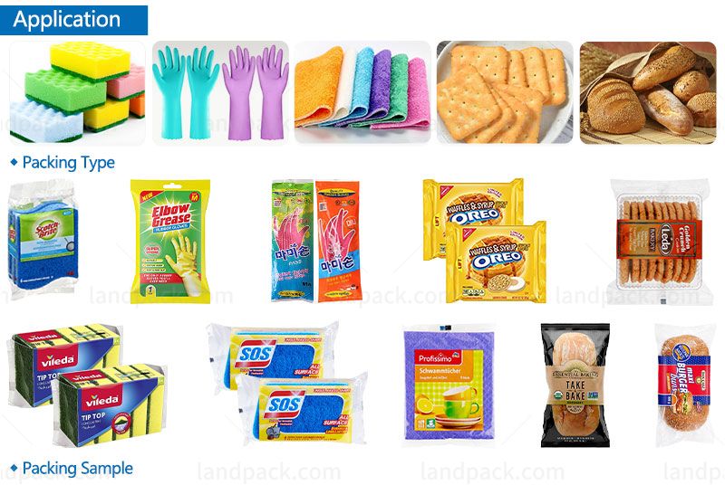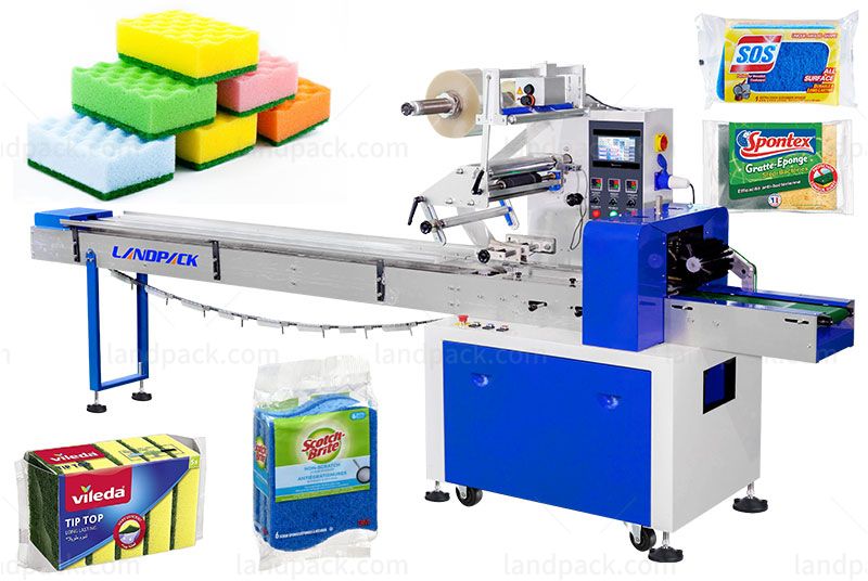Automatic flow wrapping pillow bag packing machine suitable for cleaning sponges, small sachets, soap, cookies, ice lollies, KN95 masks, disposable flat masks, facial masks, wet tissues, napkins, and other dairy products.