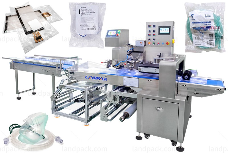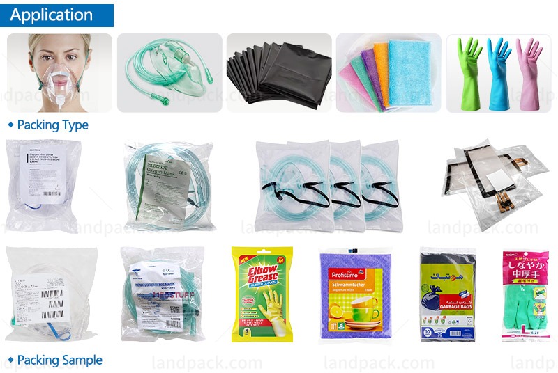 The automatic flow wrapping labeling machine is suitable for packaging medical gloves, cleaning sponges, small sachets, soap, KN95 masks, disposable flat masks, facial masks, wet tissues, napkins, and dairy products.