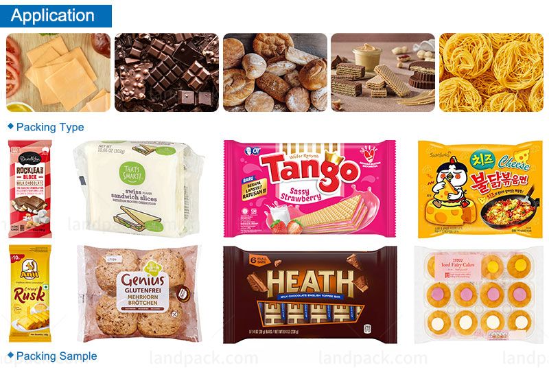 Ideal for packaging a wide range of regular items, including sliced cheese, biscuits, pies, chocolates, bread, instant noodles, mooncakes, pharmaceuticals, daily essentials, industrial parts, paper boxes, trays, and more. Designed for precision and efficiency in diverse industries.