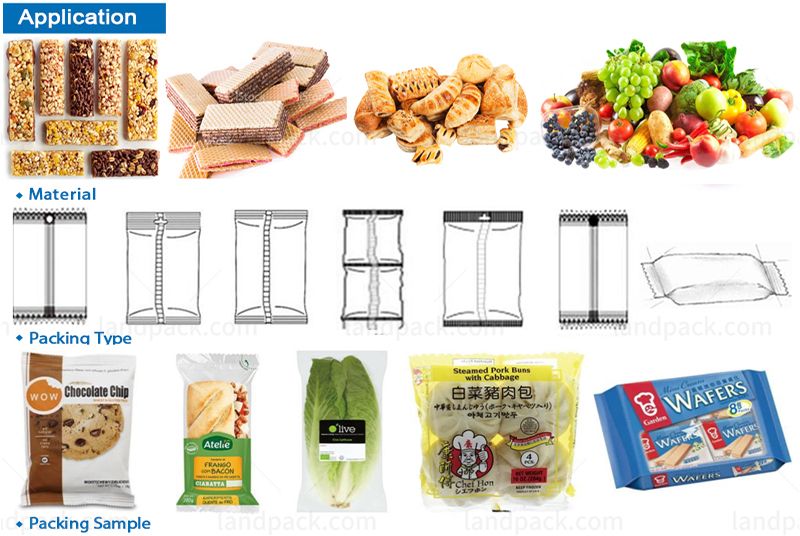 Suitable for packing soft, sticky or multi pack products such as towel, tissue, noodles, egg rolls, sausages, ice lolly, ice cream bar, soft candy, cutlery, vegetables, etc.