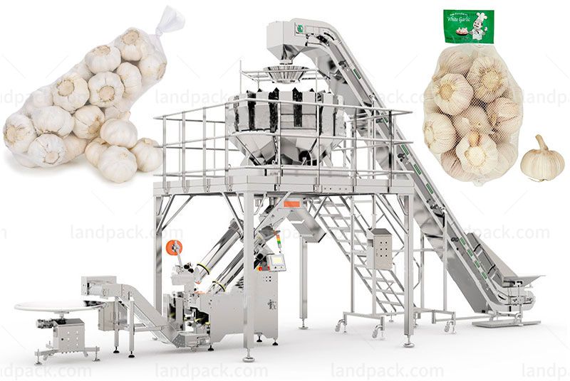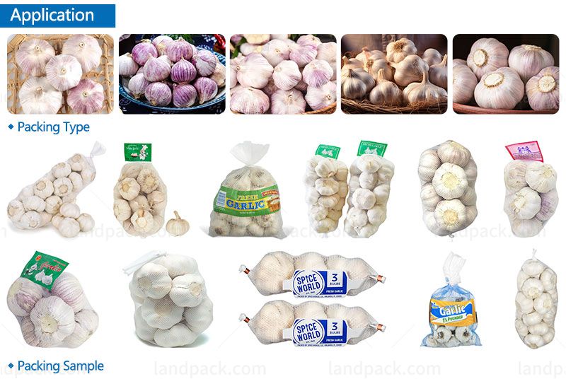 The net bag weighing packing machine is suitable for weighing large-material products such as garlic, onions, oranges, potatoes, carrots, melon, apples, tomatoes, etc.