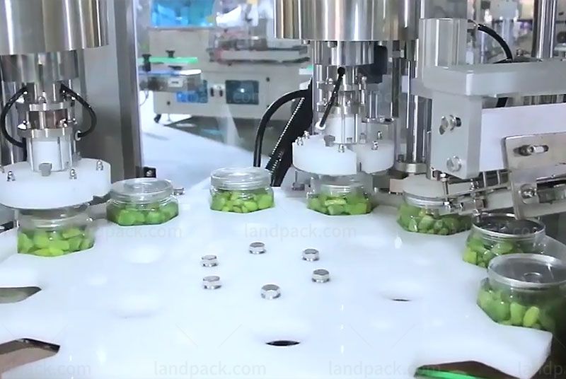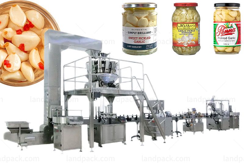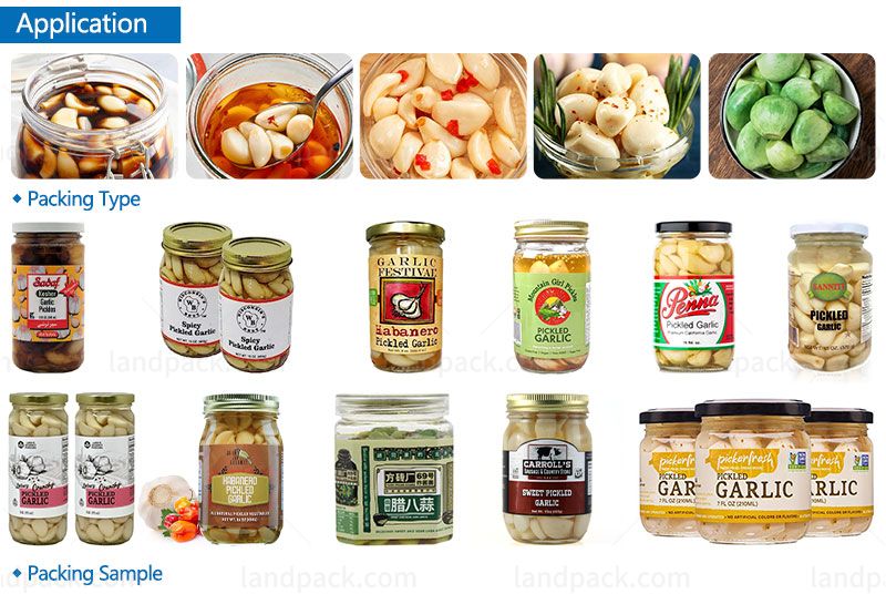 This bottle rotary filling line is suitable for various granular products such as pickled garlic, pickles, kimchi, pickle cucumber, puffed food, sliced dried meat floss, dried fish, nuts, pistachio, vegetable seeds, dried fruit, chips, popcorn, etc.