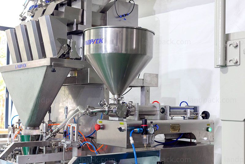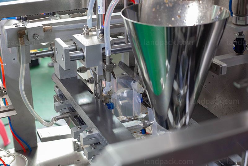 Suitable for packing grains and particles into stand-up pouch doypack pouches premade pouches such as pickled garlic, pickle, kimchi, pickled cucumber, kelp, peanuts, candy, beans, granular medicine, seed, etc.