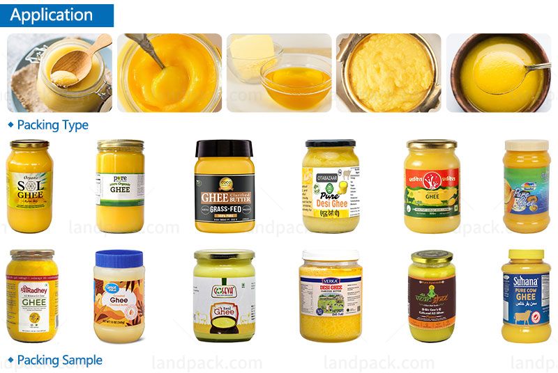 Landpack Liquid filling capping labeling line is widely used in various liquid, semi-liquid, pasty and viscous materials: Food: ketchup, sauce, ghee, olive oil, milk, pulp drinks, syrup, jam, peanut butter, paste, and various sauces. Chemicals: like shampoo, conditioner, hand soap, shower gel, detergent, disinfectant, bleach, hand-washing gel, toner, lotion, makeup remover.