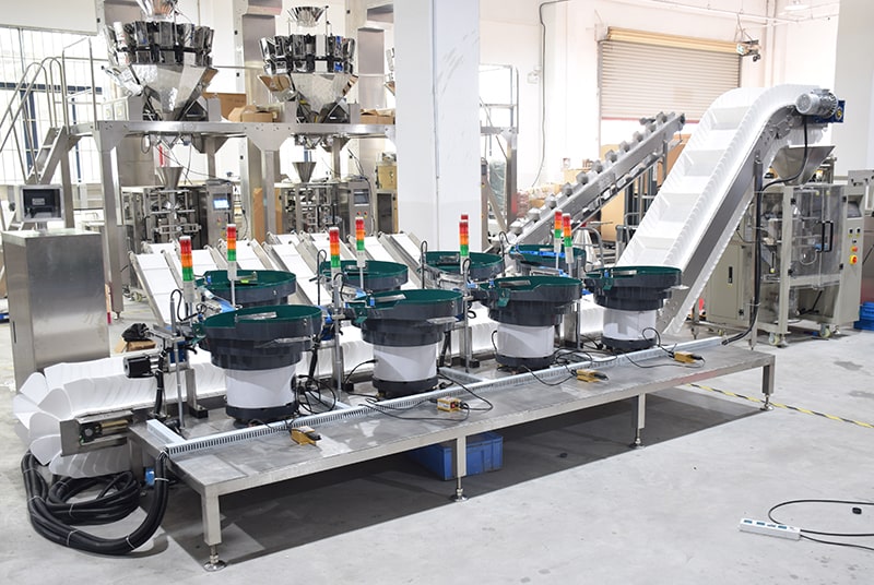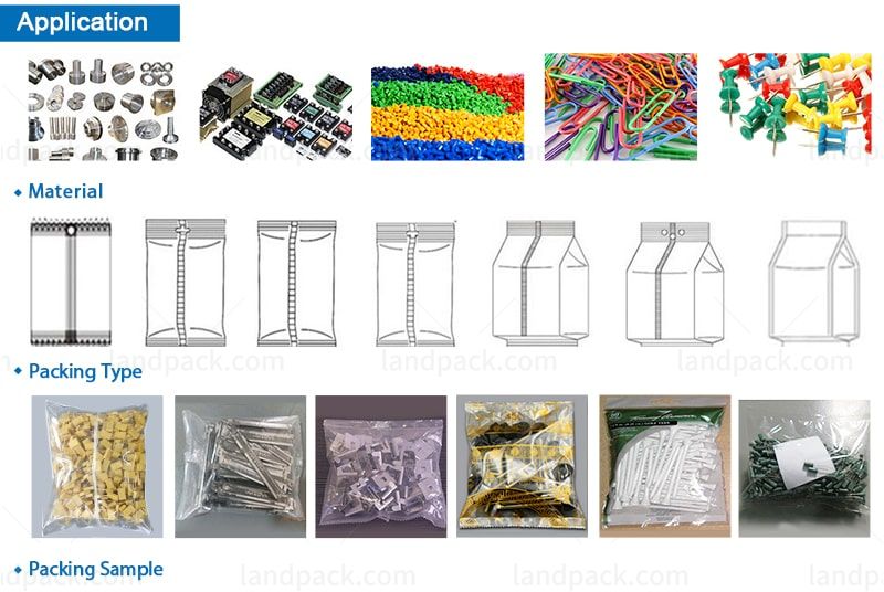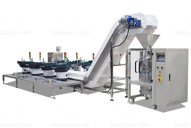 Packaging machine with 8 vibrate feeder is used for counting and packing different materials into one bag with material counting function, like counting different number custruction toys in one bag,counting virious kinds and numbers of screw, nail, bolt in one bag, etc.