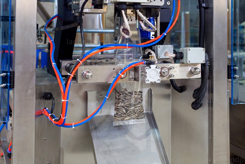 1. Automatic Film Pulling (Film Feeding) The packaging film is automatically unwound from the film roll and fed downwards into the machine.
