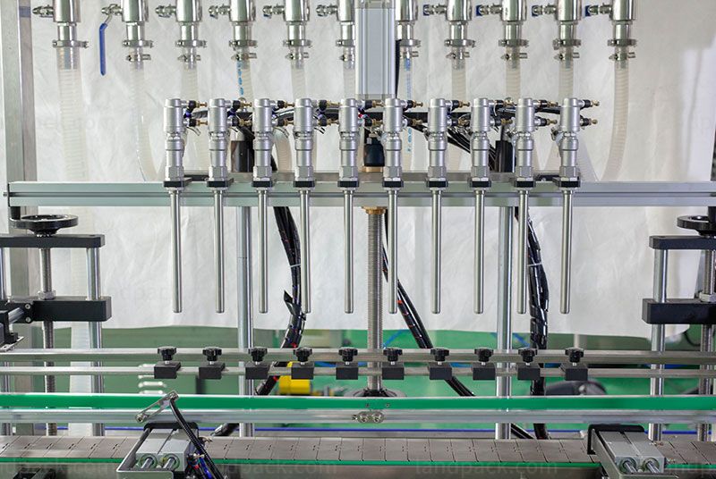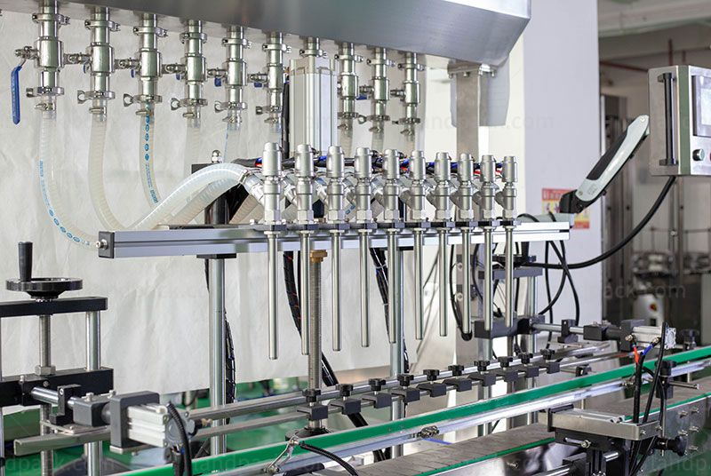 5. The filling head is equipped with a photoelectric system, which can accurately identify the positioning status of filling bottles and realize filling with bottles, filling without bottles, and not filling with few bottles.