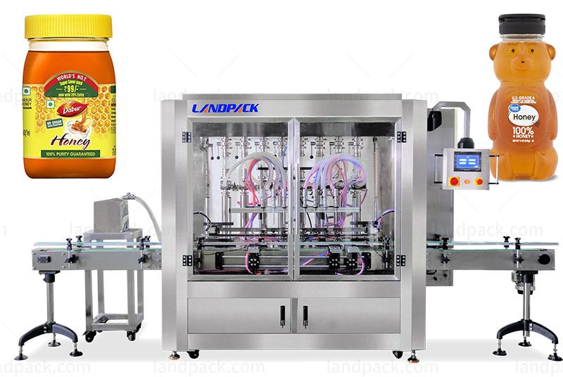 8. Honey automatic filling machine automatically goes through the bottle and can pack automatically, with high precision. According to different specifications and models of bottles, the volume of the bottle and the size of the bottle mouth can be adjusted at will. It can be equipped with an automatic assembly line.