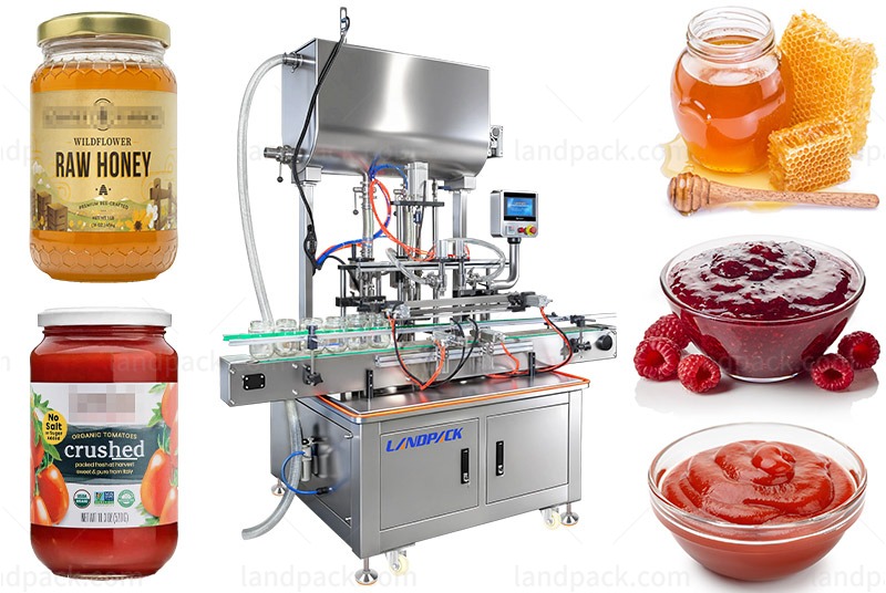 Landpack's honey filling machine is developed for flexibility and precision, which makes it the perfect solution for cosmetic, food and medical industries. Built to handle high-viscosity items without drips, this machine can be used as filling machines for honey jars and a filling machine for honey bottles and can be used with a wide variety of containers, including glass containers, plastic bottles and metal cans. With a capacity that can reach 60 bottles/min, this sturdy filling machine for liquids is not only ideal for raw and processed honey, but it is also extensively used to package syrups, jams made from fruit, tomato paste, and other daily chemical products, guaranteeing an efficient and reliable quality for your manufacturing line.