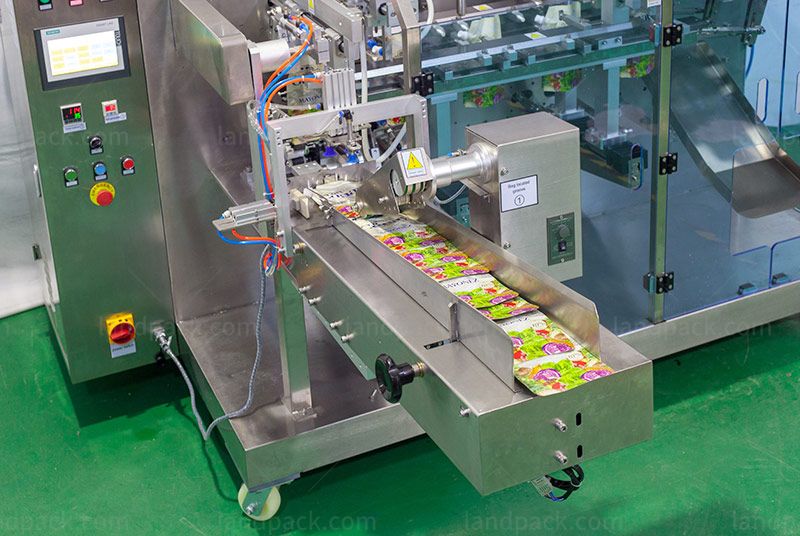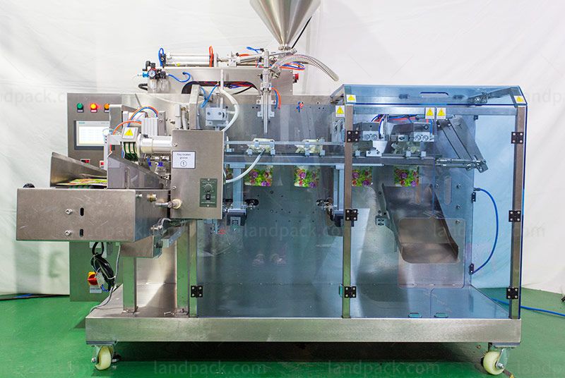 Machine machine can equipment with different metering system like weigher, liquid pump, auger filler, bucket chain for different kinds of product filling and packing in premade bag.