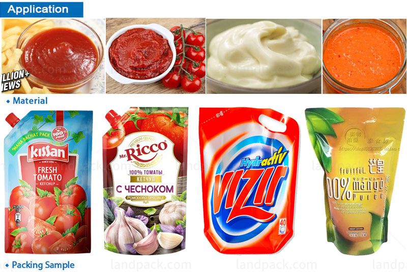 This liquid filling packing machine consists of the liquid pump and the host packing machine. It suitable for kinds of liquid products and can pack different premade bags. It is applied for various kinds of liquid such as honey, milk, oil, ketchup, paste, sauce, fruit juice, hand wash, laundry liquid, etc. After replacing the metering device, also can be used for packaging granule and powde products.