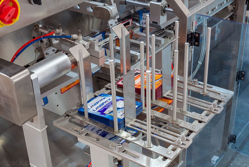 1. Double Bag Feeding – Two premade pouches are automatically fed into the machine at the same time.