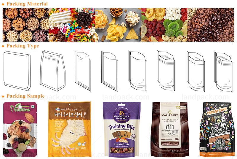 Fast Speed Horizontal Pre-Made Pouch Doypack Packing Machine With Multihead Weigher, it is suitable to use in packing the high accuracy and easy fragile material. Such as: nuts, pet food, puffy food, chips, jelly, candy, pistachio nuts, apple slices, frozen dumpling, coffee beans, pasta, cotton candy, french fries, rice, small hardware etc.