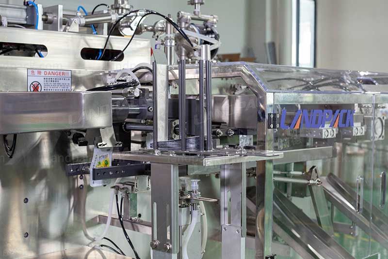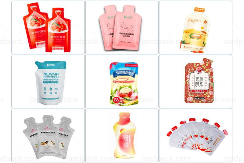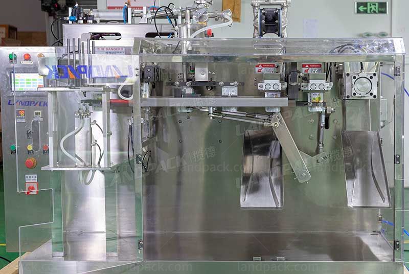 Horizontal juice doypack hffs packing machine(LD-160L), it is suitable for packaging various liquid products in special-shaped bags, such as various emulsions, essences, juice yeast drink, beverages, jams, yogurts, etc.