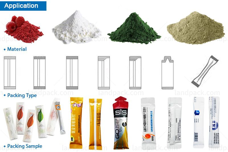 Automatic multilane powder stick packing machine, it is suitable for many kinds of powder products, such as flour, milk powder, coffee powder, health powder, medicine powder, glucose, medical powder, nutrition powder, etc.