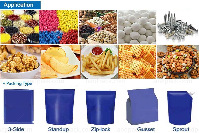For various pre-made bags such as pillow bags, gusset bags, zipper bags etc. For lots of application such as coffee, frozen foods, cookies, cereals, nuts, flower, candy etc.