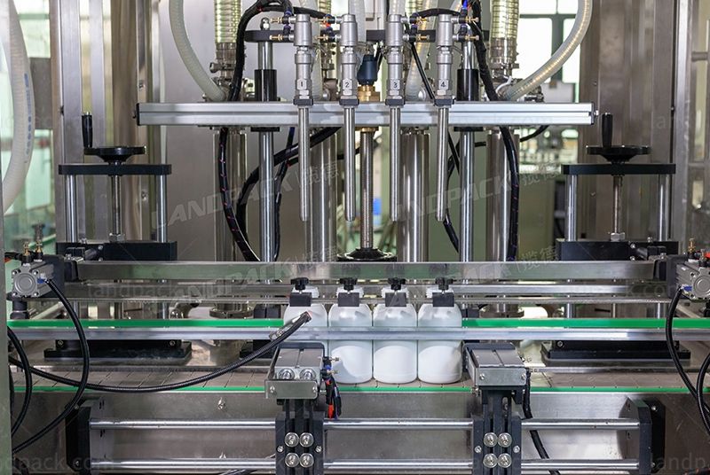 6. Users can choose the filling quantity according to their own production capacity and determine the number of filling heads. Each filling head is equipped with a bottle clamping device to ensure accurate filling alignment.