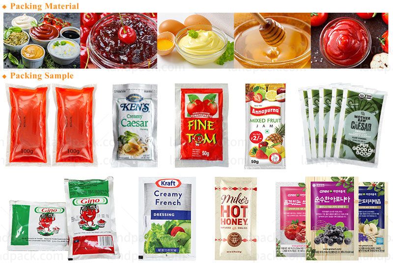 Automatic multilane liquid sachet packing machine is suitable for many kinds of liquid products, such as ketchup, sauce, honey, oil, jelly, shampoo, facial cream, etc.