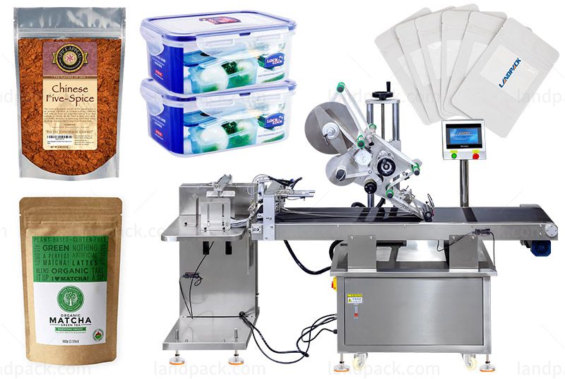 It's designed for flat surface premade pouches like stand up pouches, flat pouches, vacuum pouches, coffee bags, etc. To ensure labeling accuracy and effect