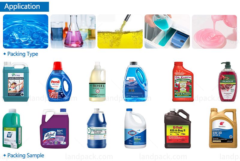 This Automatic Liquid Bottle Filling Capping Labeling Machine Line is suitable for automatic filling all of types bottles in various liquid, such as liquid soap, detergent, syrup, sauce, cream, paste, jam, juice, cosmetics, hand sanitizer, detergent, pesticides, shampoo, and lubricant industries, and lubricant industries. It has wide applicability and convenient adjustment.
