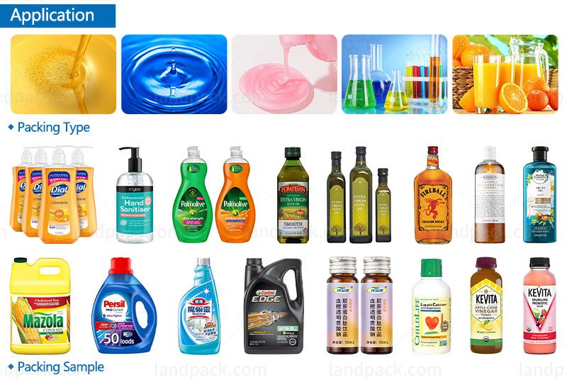 This automatic filling line can be customized to fill various products, Widely used in filling various viscous liquids, such as edible oil, honey, cream, paste, sauce, lubricating oil, and viscous liquid products. Daily chemicals liquid products, such as paint, lubricating oil, hand soap, mouthwash, facial cleanser, face cream, various essential oils, etc.