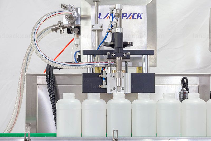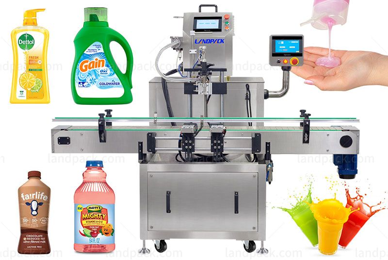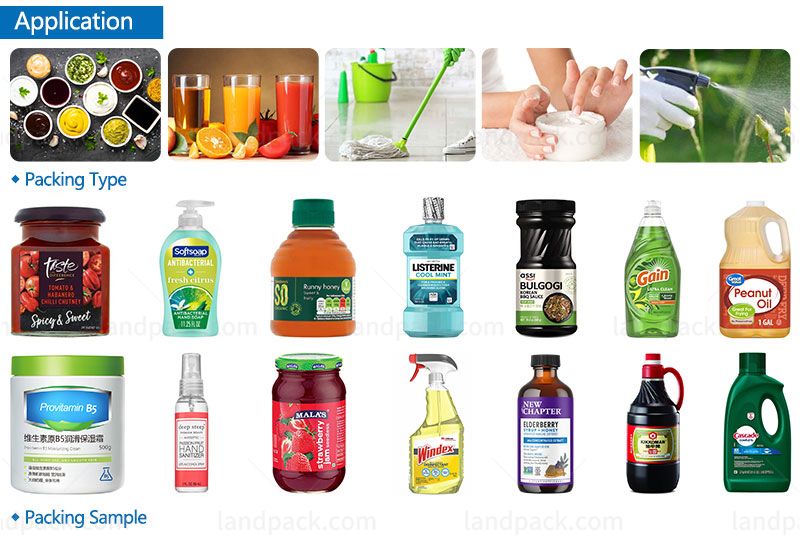 This liquid filling machine is suitable for filling all kinds of liquid, fluid and paste material, such as juice, edible oil, sauce, oil, honey, daily necessities, medicine, etc.
