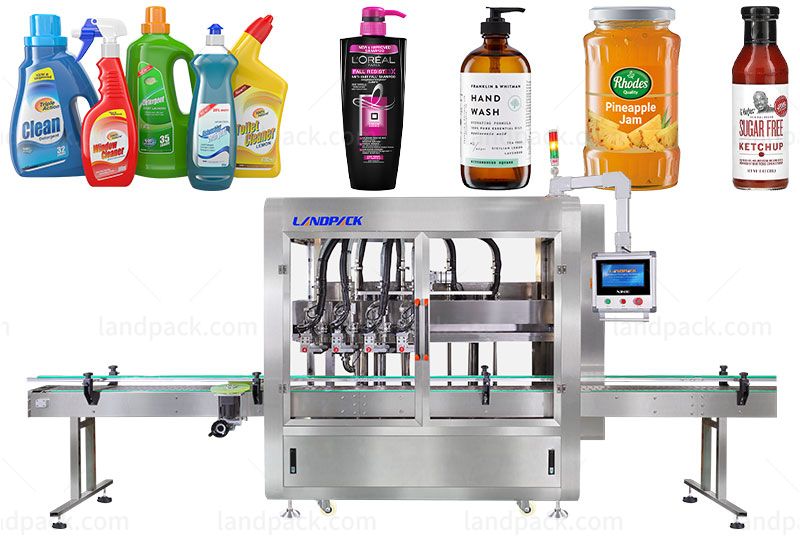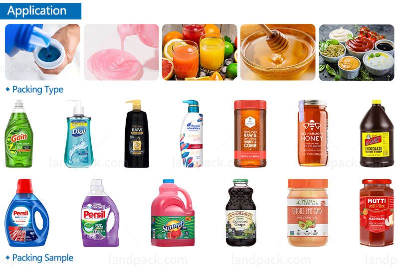 This liquid tracking bottling filling capping labeling line is suitable for filling capping labeling food, medicine, pesticide, chemical, and other industries. such as detergent liquid, hand sanitizer, lubricating oil, shampoo, sauce, paste, honey, tomato sauce, salad sauce, etc.