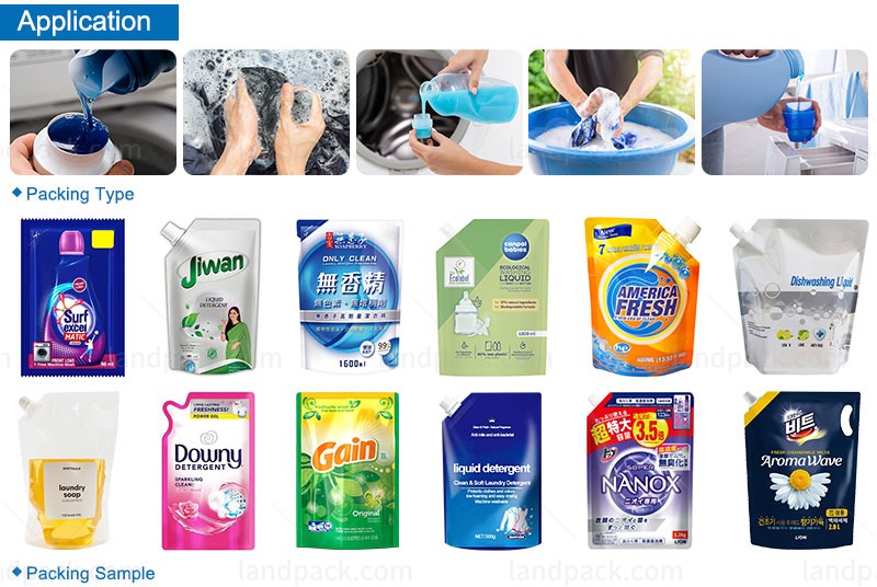 This mini doypack machine is integrated with piston pump, which is specialized for liquid filling such as water, juice, laundry detergent, ketchup , liquid soap etc.
