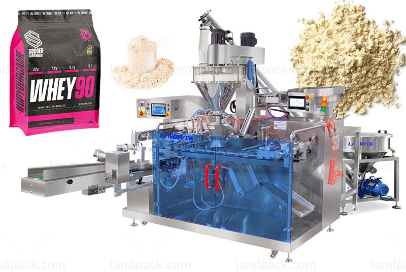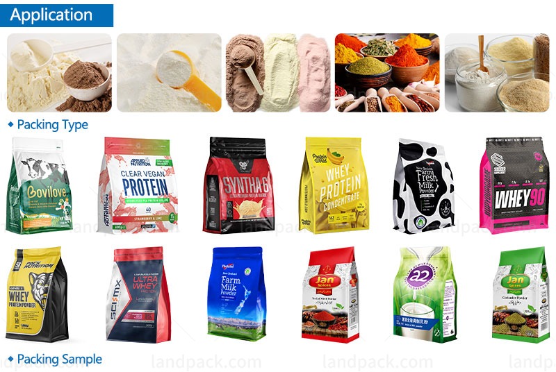 This M shape pouch packing machine is suitable for packaging various types of powder products, including protein powder, milk powder, albumen powder, tea powder, bakery powder, spices, coffee powder, medical powder, and more. It ensures accurate and efficient packaging for diverse applications.