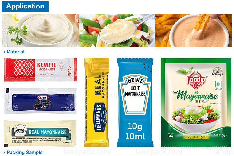 Applicable industry | High speed 10 lane mayonnaise 3/4 sealing sachet packaging machine, it is suitable for liquid products containing fine particles such as mayonnaise, chili sauce, chutney, bean paste, instant noodle sauce, ketchup, paste, honey, cream, milk, butter, water, oil, vinegar, liquid seasoning, shampoo, etc. |