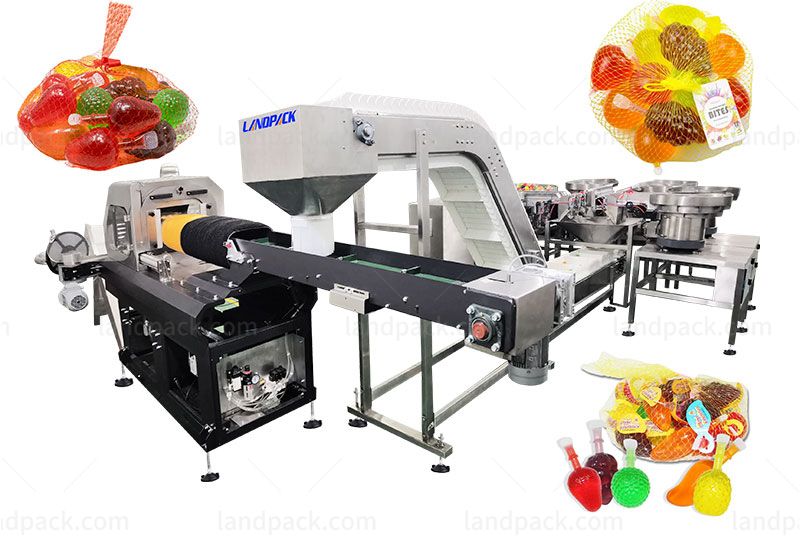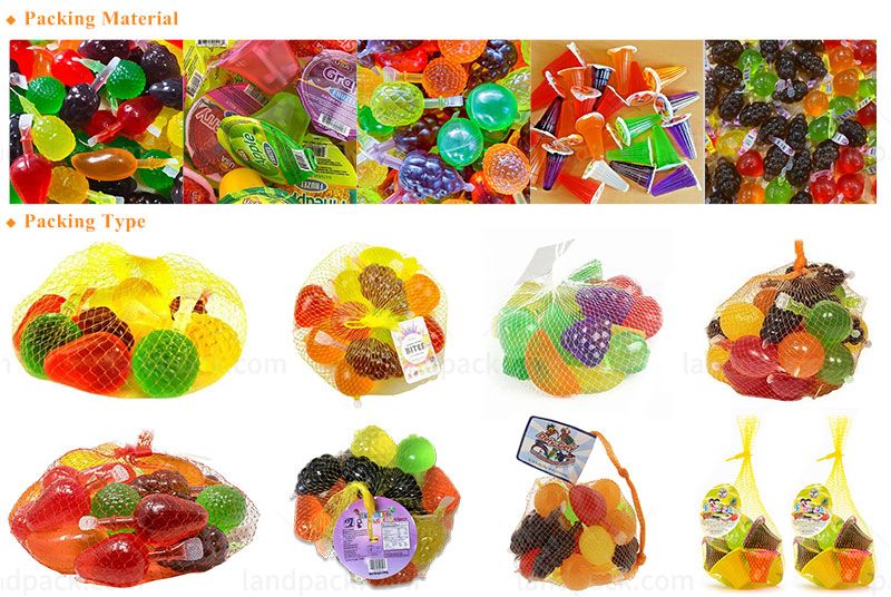 Automatic granule jelly fruit mesh net bags packing machine is suitable for the packaging of jelly, citrus, navel orange, pomelo, honey pomelo, apple, jujube, potato, onion, garlic, etc.