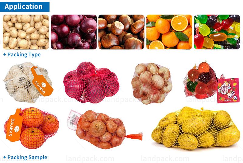 Suitable for binding operation of continuous mesh bags for fruits, vegetables, and others, such as potatoes, onions, oranges, tomatoes, sweet potatoes, bell peppers, garlic, apples, shellfish, jelly, lego bricks, etc.