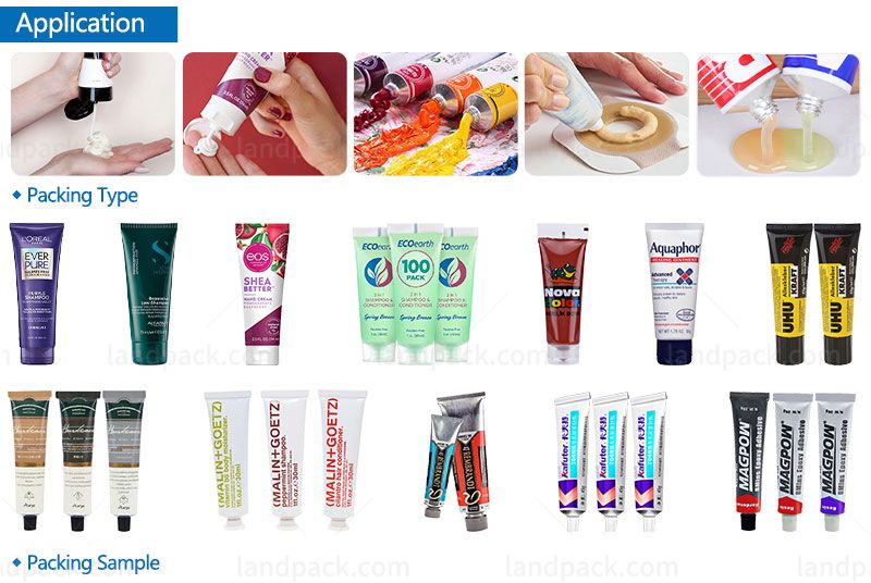 This aluminum metal tube filling machine can be widely used in the Food, Cosmetics, Pharmaceutical, and Chemical industries, applicable for producing paste, adhesives, AB glue, epoxy glue, skin creams, hair dyes, shoe polish, toothpaste, RTV silicone, etc.