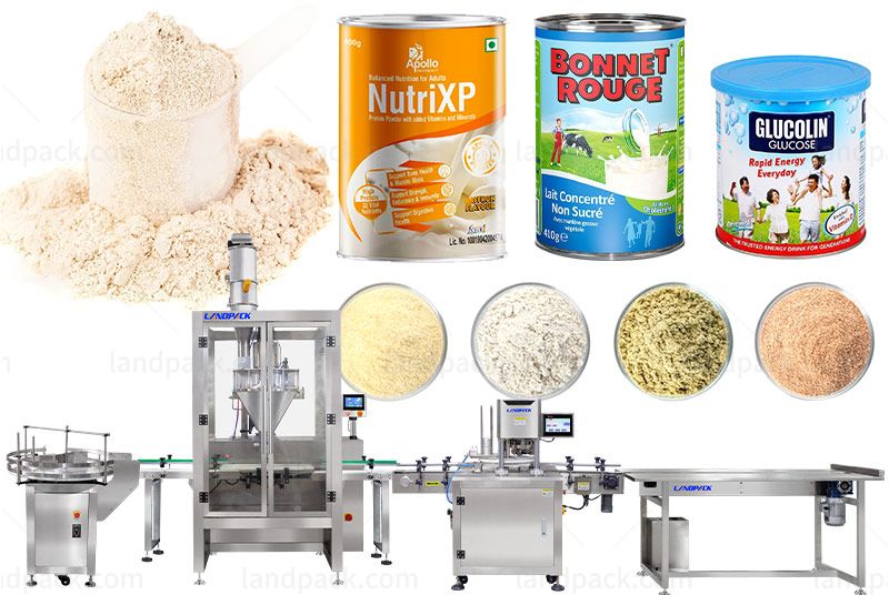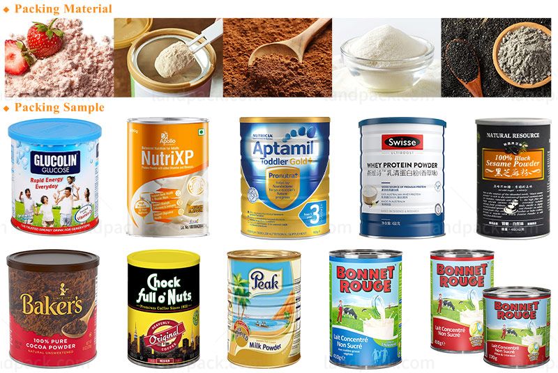 Suitable for automatic weighing filling seaming of various fluidic or low-fluidity powder materials like protein powder, collagen powder, nutrition powder, milk powder, coffee powder, etc. It's widely used in various industries including pharmaceutical, foodstuff, cosmetics and chemicals.