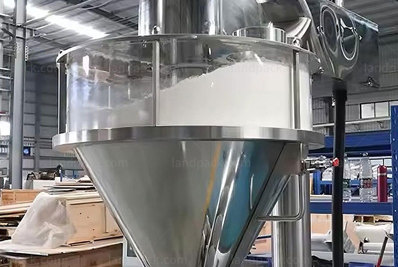 4. Transparent organic glass hopper allows easy monitoring; materials are manually loaded and automatically conveyed for continuous filling.
