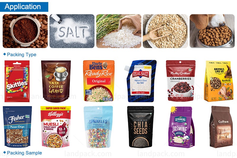 Perfect for packaging granular items like rice, beans, coffee, and tea with precise weight control.