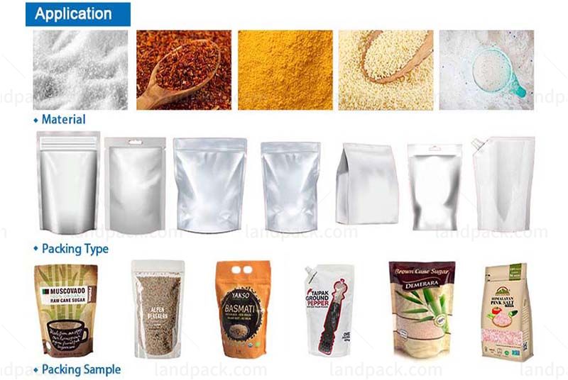 Suitable for small granule material,such as crystal monosodium glutamate,seasoning,washing powder, pesticides, chemicals, sugar, feed and other small granule material automatic packing.