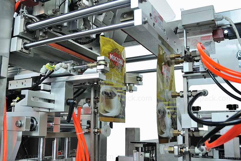 It can auto finish material feeding, weighing, premade pouch pick-up, open, fill and seal, etc. Premade pouch can be 3-side-seal, gussette pouch, standup pouch no-zip-lock.