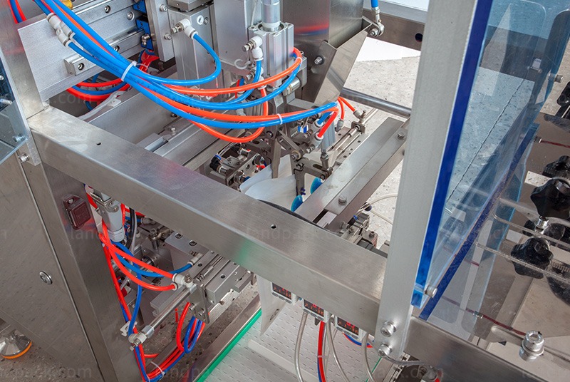 1. Bag Feeding – Premade pouches are placed into the machine and automatically fed to the next station.