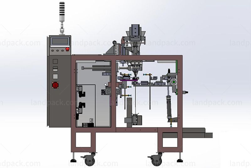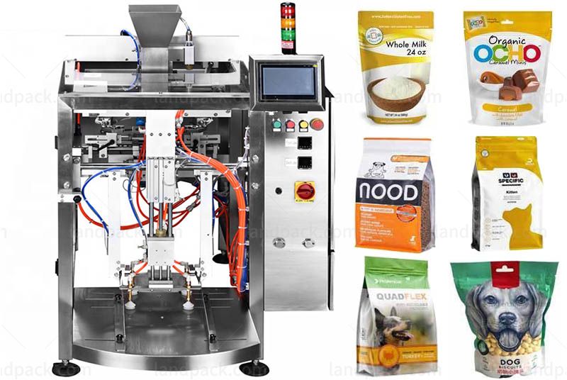 Automatic filling machine for premade doypack pouches.