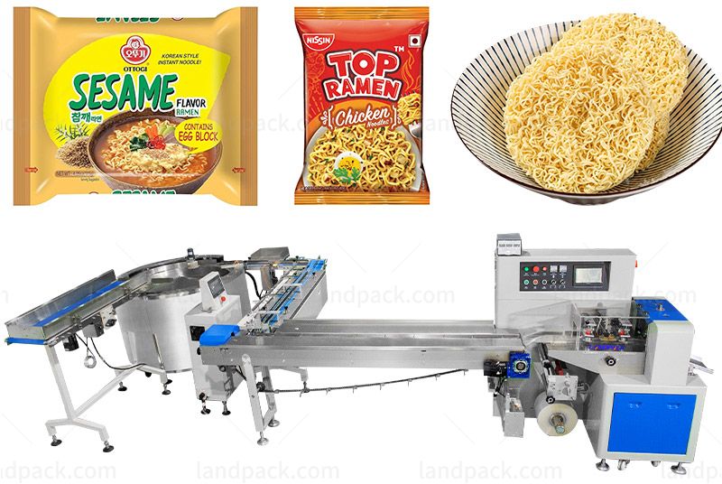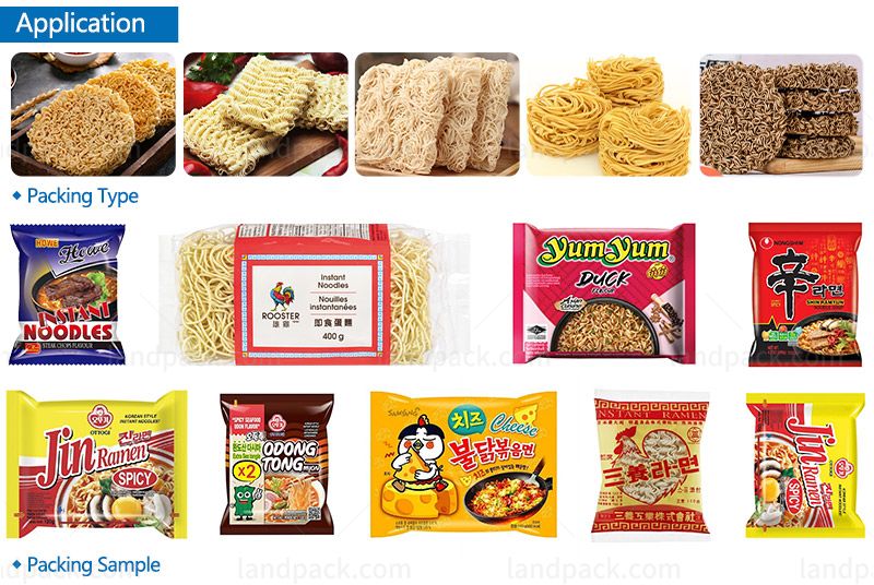 The packing line with turntable is suitable for sorting packing instant noodles, udon noodles, rice noodles, chow mein noodles, pad thai noodles, pho noodles, etc.