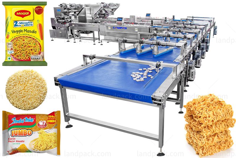 This 1+3 flow feeding packing machine line mainly focuses on sorting and packing kinds of noodles, such as instant noodles, ramen noodles, chow mein noodles, vermicelli, rice noodles, etc.