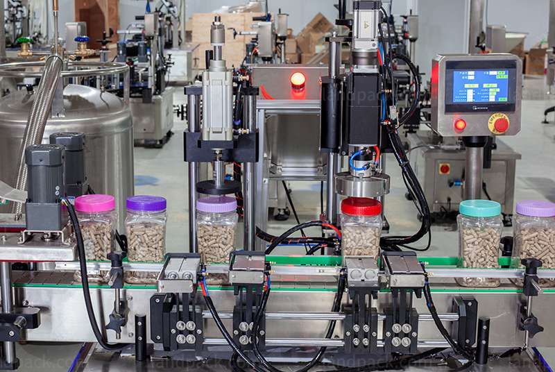 This automatic filling production line is suitable for filling and filling various granular and solid materials. It is called linear metering method with high precision. It forms an automated production line with capping machine, aluminum foil sealing machine, and labeling machine. The production line has stable operation, low noise, simple operation, wide adaptability and meets GMP certification requirements.