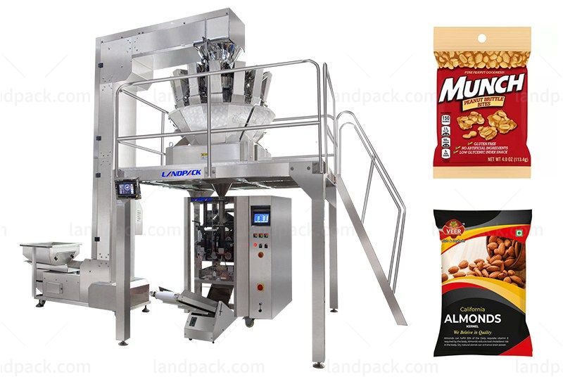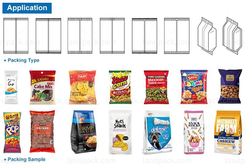 Suitable for packing all kinds of grain material, sheet material, strip material and abnormity material which such as nuts, beans, peanut, candy, sunflower seeds, potato chips, popcorn, almond, dry fruit, vegetable salad (shreded or sllices vegetables, like iceberg lettuce, cabbage, romain, spring onion and leek ect.), frozen food, jelly, biscuit, chocolate, filbert, corn, pet food, dilatant foodstuff, hardware and plastic can be weighed by the ration.